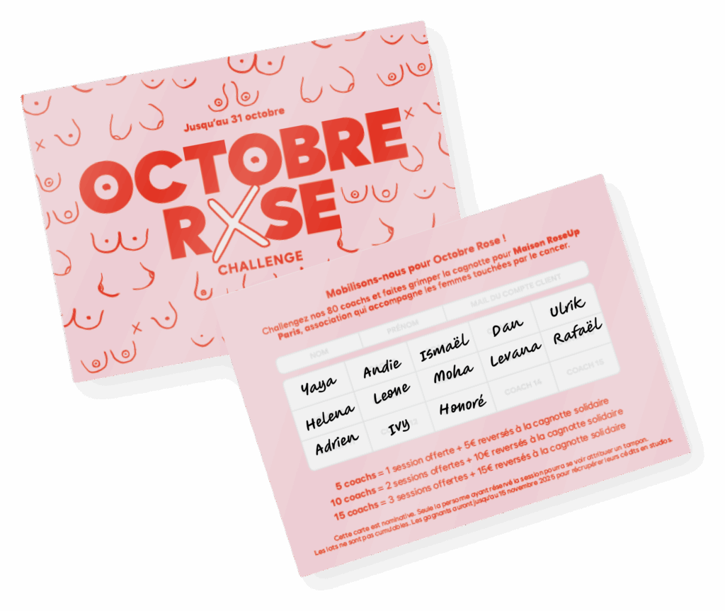 Chaque participant récupère une carte challenge octobre rose à l’accueil du studio.